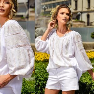 IE Traditionala Romaneasca alba cusuta manual cu matase – altita 07