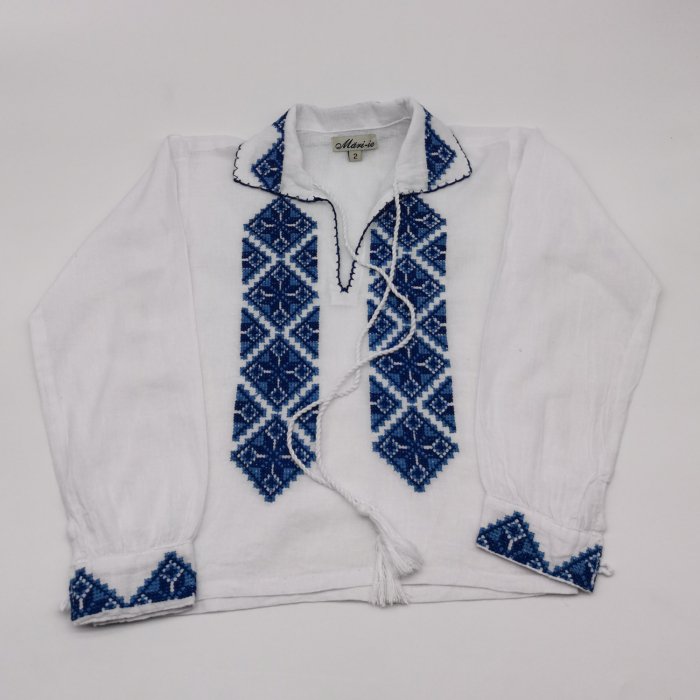 Ie traditionala baieti Material: bumbac 100%. Broderia este cusuta la masina Culoare: alb si albastru.