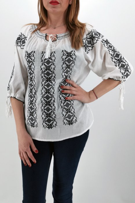 Ie din panza de bumbac 100%, Broderie cusuta la masina. Bluza lejera de purtat in orice moment al zilei. Culoare: alba cu broderie rosie si verde , , , , , , , Marimi disponibile: S -100cm circumferinta bustului, 65 cm lungime, M -105cm circumferinta bustului, 65 cm lungime, L , 110cm circumferinta bustului, 66 cm lungime, XL , 115cm circumferinta bustului, 67 cm lungime. XXL , 120cm circumferinta bustului, 68 cm lungime Modelul din imagine are 170cm, 60kg, 92cm in bust si poarta masura S.