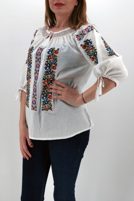 Ie din panza de bumbac 100%. Broderie cusuta la masina. Culoare: alb cu broderie, rosie, galbena, verde si negru. Marimi disponibile: S -100cm circumferinta bustului, 65 cm lungime, M -105cm circumferinta bustului, 65 cm lungime, L , 110cm circumferinta bustului, 66 cm lungime, XL , 115cm circumferinta bustului, 67 cm lungime. 2XL , 120cm circumferinta bustului, 68 cm lungime Modelul din imagine are 170cm, 60kg, 92cm in bust si poarta masura S. ! Se recomanda spalare la masina la 30 grade, de preferat spalare manuala. ! Nu iese culoarea din broderie, materialul nu intra la apa!