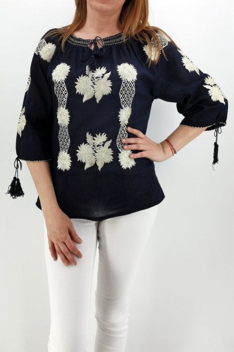 Ie din panza de bumbac 100%. Broderie cusuta la masina. Bluza lejera de purtat in orice moment al zilei, pentru ca iubim portul popular. Culoare: bleumarin cu broderie aurie. Marimi disponibile: S -100cm circumferinta bustului, 65 cm lungime, M -105cm circumferinta bustului, 65 cm lungime, L , 110cm circumferinta bustului, 66 cm lungime, XL , 115cm circumferinta bustului, 67 cm lungime. 2XL , 120cm circumferinta bustului, 68 cm lungime 3XL , 125cm circumferinta bustului, 68 cm lungime 4XL , 130cm circumferinta bustului, 75 cm lungime 5XL, 135cm circumferinta bustului, 78 cm lungime 6XL , 140 cm circumferinta bustului, 80 cm lungime Modelul din imagine are 170cm, 60kg, 92cm in bust si poarta masura S.