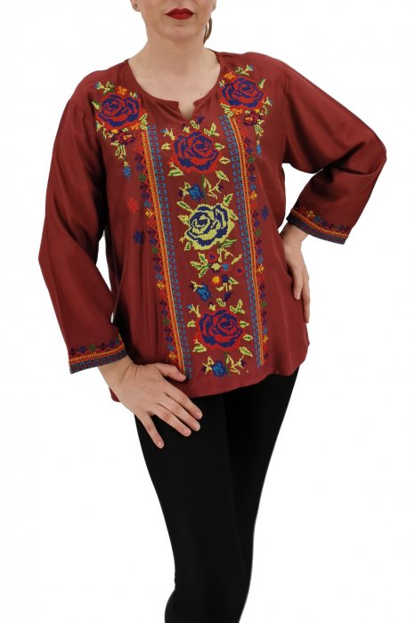 Ie din panza de bumbac 100%, Broderie cusuta la masina. Marimi disponibile: S -100cm circumferinta bustului, 65 cm lungime, M -105cm circumferinta bustului, 65 cm lungime, L , 110cm circumferinta bustului, 66 cm lungime, XL – 115cm circumferinta bustului, 66 cm lungime, Modelul din imagine are 170cm, 60kg, 92cm in bust si poarta masura S. ! Se recomanda spalare la masina la 30 grade, de preferat spalare manuala. ! Nu iese culoarea din broderie, materialul nu intra la apa!
