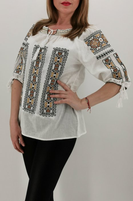 Ie din panza de bumbac 100%, Broderie cusuta la masina. Bluza lejera de purtat in orice moment al zilei. Culoare: bleumarin cu broderie crem , , , , , , , Marimi disponibile: S -100cm circumferinta bustului, 65 cm lungime, M -105cm circumferinta bustului, 65 cm lungime, L , 110cm circumferinta bustului, 66 cm lungime, XL , 115cm circumferinta bustului, 67 cm lungime. Modelul din imagine are 170cm, 60kg, 92cm in bust si poarta masura S.