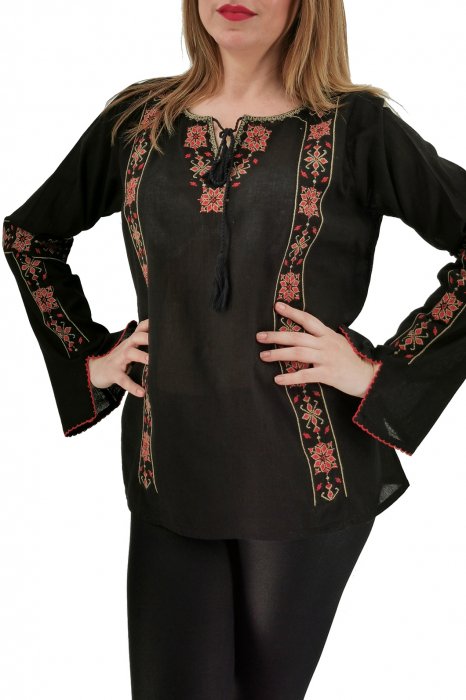 Ie din panza de bumbac 100%, Broderie cusuta la masina Culoare: neagra cu broderie alba si crem Marimi disponibile: S -100cm circumferinta bustului, 65 cm lungime, M -105cm circumferinta bustului, 65 cm lungime, L , 110cm circumferinta bustului, 66 cm lungime, XL , 115cm circumferinta bustului, 67 cm lungime. XXL , 120cm circumferinta bustului, 68 cm lungime XXXL , 130cm circumferinta bustului, 70 cm lungime , , , , , , , Modelul din imagine are 170cm, 60kg, 92cm in bust si poarta masura S.