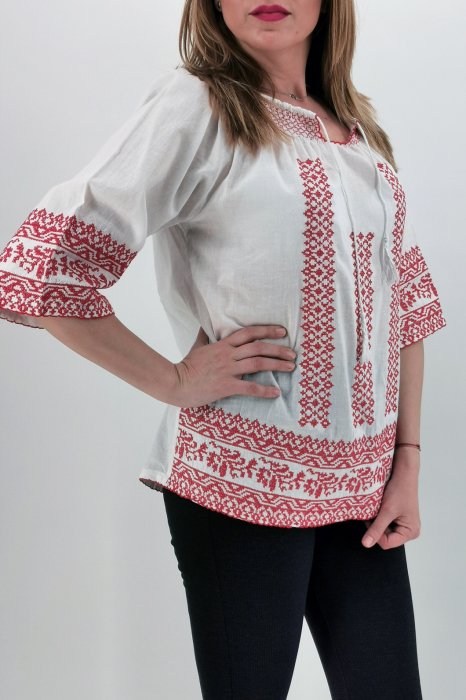 Ie din panza de bumbac 100%, Broderie cusuta la masina. Bluza lejera de purtat in orice moment al zilei. Culoare: bleumarin cu broderie crem , , , , , , , Marimi disponibile: S -100cm circumferinta bustului, 65 cm lungime, M -105cm circumferinta bustului, 65 cm lungime, L , 110cm circumferinta bustului, 66 cm lungime, XL , 115cm circumferinta bustului, 67 cm lungime. Modelul din imagine are 170cm, 60kg, 92cm in bust si poarta masura S.