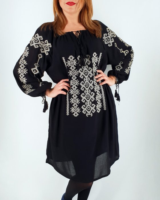 Rochie stilizata, vaporoasa si lejera. De purtat in orice moment al zilei. Material: bumbac 100% Marimi disponibile: S , 106cm circumferinta bustului, 96cm lungime, M , 110cm circumferinta bustului,96cm lungime, L , 117cm circumferinta bustului, 97cm lungime, XL , 125cm circumferinta bustului, 98cm lungime, 2XL , 131cm circumferinta bustului, 98cm lungime, Rochia este prevazuta cu jupa, fara elastic in talie, cu maneca lunga. Rochie vaporoasa si lejera la purtat. Modelul din imagine are 1.70 m, 60kg, 90cm circumferinta bustului si poarta S in poza.