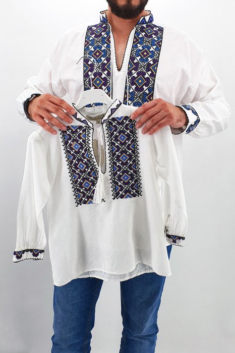Set Traditional Mama Tata fiu 3 Material: bumbac 100% Marimi disponibile: S , 100cm circumferinta bustului, 105cm lungime, M , 105cm circumferinta bustului,105cm lungime, L , 110cm circumferinta bustului, 106cm lungime, XL , 115cm circumferinta bustului, 106cm lungime, XXL-120cm circumferinta bustului, 107cm lungime. 3XL – 125cm circumferinta bustului, 104cm lungime. Bluza cu tematica traditionala lejera la purtat. Camasa prevazuta cu guler. Material: Bumbac 100%, fin la atingere. Broderie cusuta la masina.